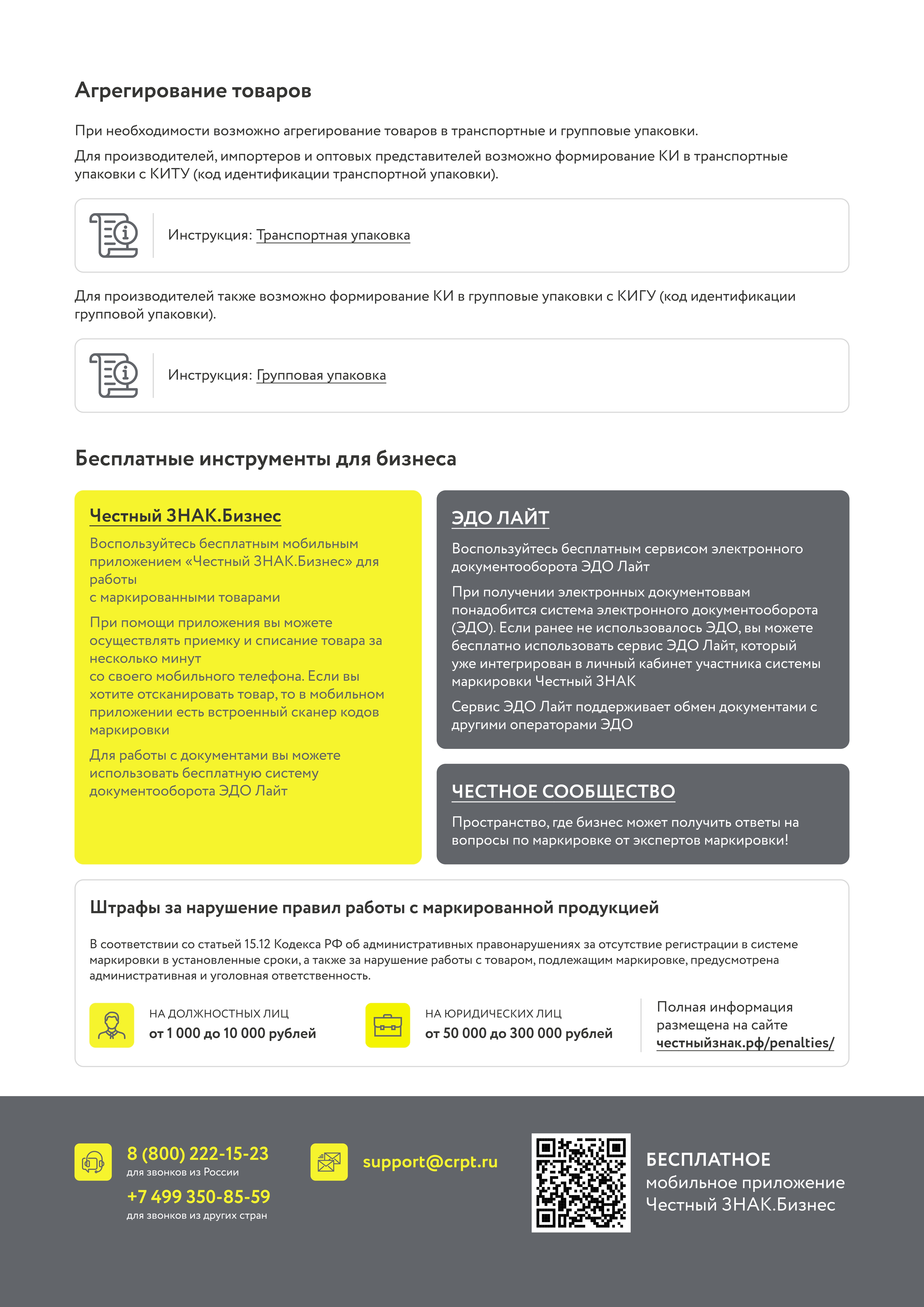 В случае возникновения вопросов и сложностей при работе с информационной системой маркировки участник оборота товаров может обратиться в службу технической поддержки Оператора по адресу: support@crpt.ru или по телефону 8-800-222-15-22.